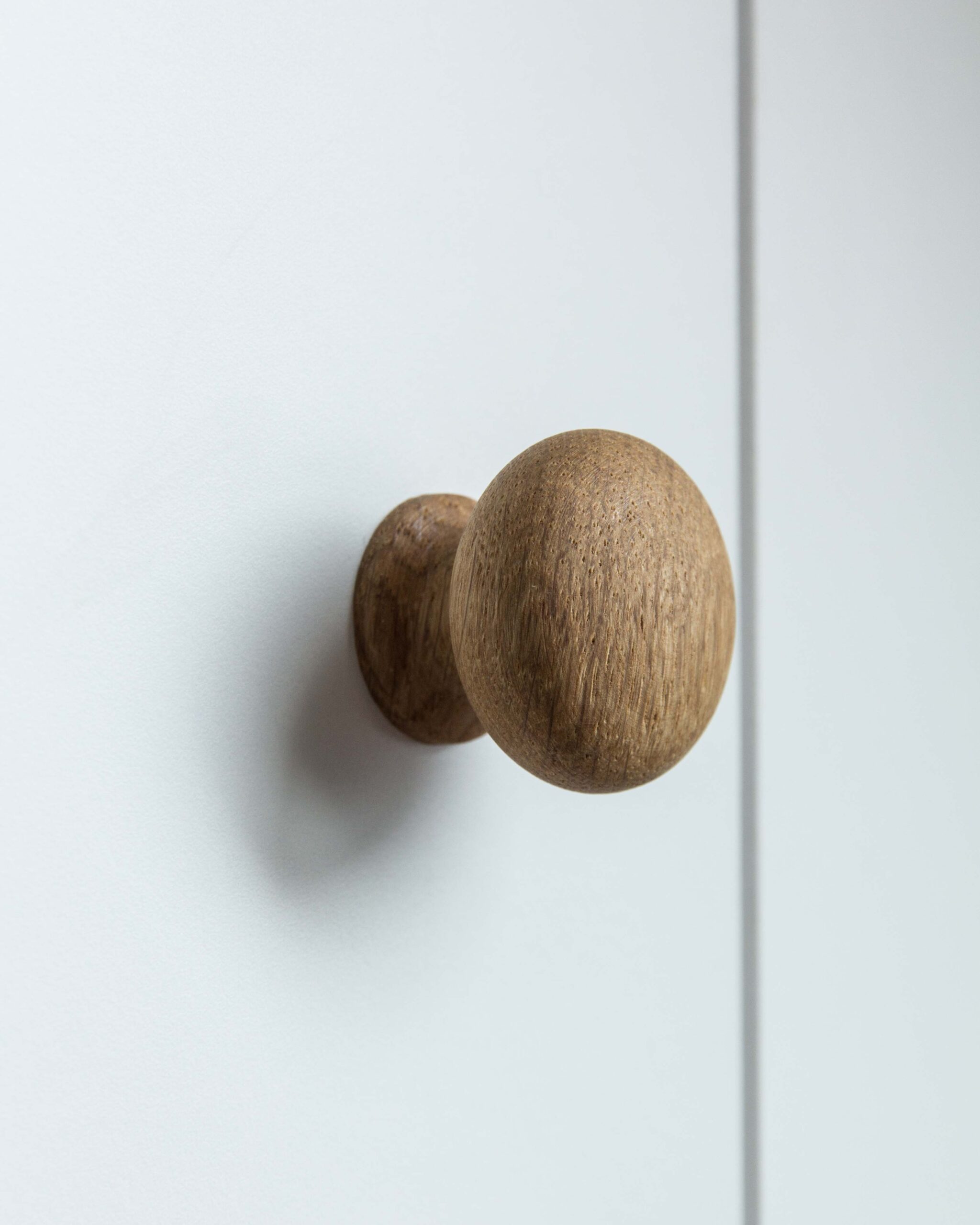 Massgefertigter weisser Schrank für die Dachschräge Ein kleiner, massgefertigter Schrank in Weiss mit schönen, runden Holzgriffen. Perfekt zugeschnitten für das Kinderzimmer unter der Dachschräge.